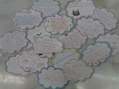 1時間目は、学びと力の発表会のふり返りを行いました。初めに、昨日のダンスの映像をみんなで見ます。「最後こんなに声小さかった?!」と笑いが起きるほど、みんな緊張していたようでしたが、それでも自分たちの頑張りに拍手が起こります。最後に、発表会でのふりかえりを書きました。