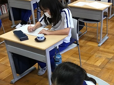 6時間目の社会では、「京都府南部のお茶作り」について学習をしています。そこで、今日は実際に宇治市から学校へ送っていただいた「宇治茶」を全員で味わってみることにしました。今日は、市販の緑茶ティーバックと飲み比べをしてみます。