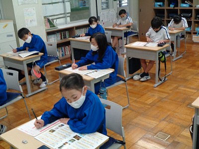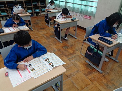 6時間目は、総合の締めくくりでもある「ジュニア京都検定」に挑戦しました。マークシートでの解答に、すこし緊張気味の4年生でしたが、これまでの知識を生かして、どんどん解き進めていきます。自己採点では、なかなかの手応えを感じている人も多かったようで、結果が楽しみです!