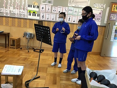 みんなに歌ってもらい、それぞれのグループがリズムを入れていく、という流れです。