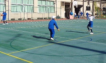 今日は、2回目のポートボールを行いました。今日は「ゴールマン」と「ガードマン」というポジションを決めて試合を行います。授業の初めは、ランニングパスの練習からです。相手の方を見て、相手に合わせて投げるというのは、なかなか難しいものです。何度もくり返しているうちに、だんだん慣れてきた4年生。相手に合わせて投げる、相手の投げる場所にに合わせて走るなど、心を合わせることが大切です。