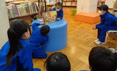 5時間目は、読書の時間です。今日は、読み聞かせ係さんから「さみしがり屋のサンタクロース」という、今の季節にぴったりの絵本の読み聞かせとクイズから始まりました。みんな真剣な眼差しで、絵本をみています。