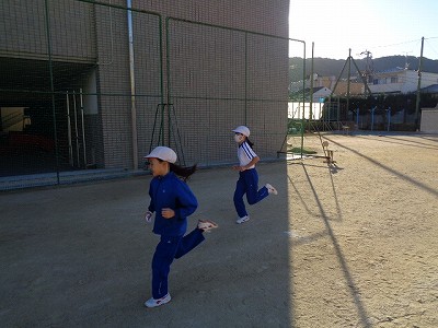 1学期の初めは、止まって歩いてしまう人も多かったのですが、今ではみんな自分のペースを見つけて、5分間を走り抜ける粘り強さを見せてくれています。お日様も差して、冷えていた教室もあっという間にポカポカになります。
