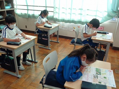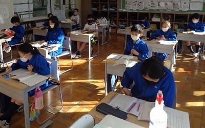 今日の社会は、学習してきた宇治茶のテストを行いました。何度も見直しをして、ミスのないように気をつけます。振り返りでは、もっと他の市についても調べてみたいという感想もありました。来週からは、京都府の美山町について学習を行います。