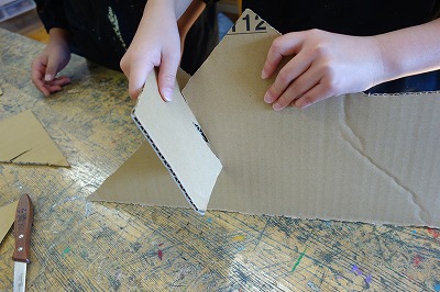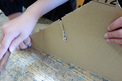 今日は、まだ慣れない「ダンボールカッターさばき」でしたが、ほどなくスマートになりそうです。1つの大きな形が生まれるのでしょうか。来週もまた楽しみです。
