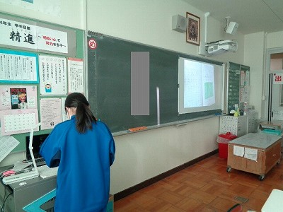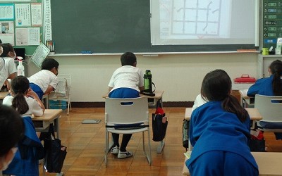 その後は、教室にもどって、みんなでクイズです。よく見なければ分からない難しい推理問題に、みんな椅子からおしりを浮かせて必死の様子。画面に釘付けです。