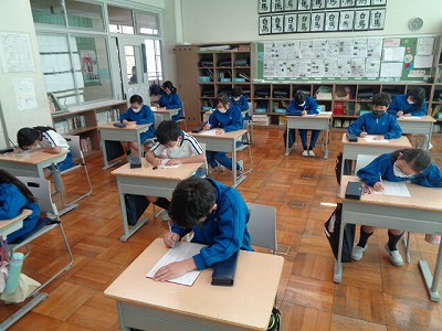 4時間目の国語は、授業の始めに漢字大会に向けての漢字小テストを行いました。