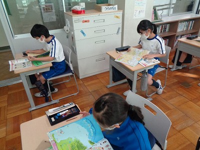 6時間目の社会は、新しい単元に入りました。今日から、京都府南丹市美山町について学習を進めます。美山町は、京都府北部にある自然豊かな町です。美山町を知っていたという4年生はなんと0人。美山町には何があるのか、何も分からない所から学習問題を作っていきます。今日はまず、美山町はどんな場所にあるのかという所からスタート。地図帳を広げて、美山町を発見します。丹波高地の真ん中にあり、由良川が通っているなど、地形的な特徴を捉え、美山町の魅力について予想をする1時間となりました。