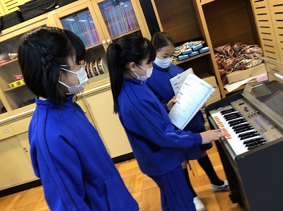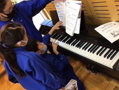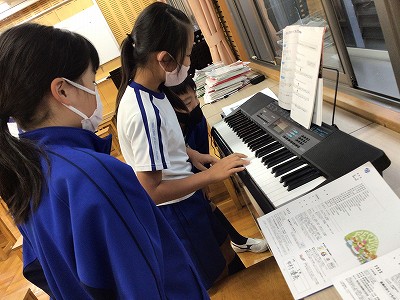 日本風やお祭り風、沖縄風な音階を使って、個人のメロディを作る学習が始まっています。