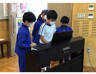 同じタイプの音階を選んだ仲間と自分オリジナルの音楽を合わせ、一つの曲にまとめて発表する時間です。