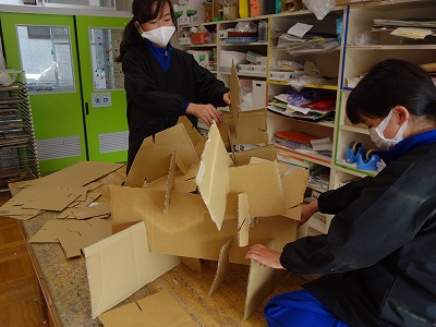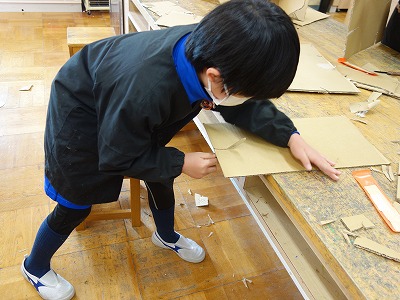 ダンボールを切る姿も、足腰が安定してずいぶんかっこよくなってきました。