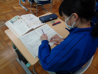 金曜日の「朝根っこタイム」はマラソンです!寒さが厳しく、凍てつくような空気の中ですが、みんな懸命に腕を動かして走ります。走り終わった後は、耳や手が真っ赤になり、「寒い」を通り越して「痛い」と話す4年生キッズがたくさんいました。マラソンカードの記入も、手がかじかんで一苦労の朝でした。