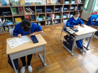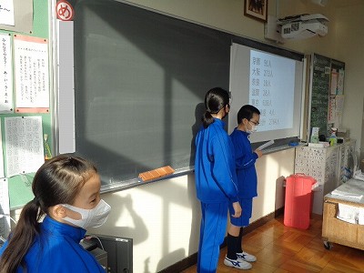 6時間目の国語は、木曜日に行われる「漢字検定」に向けて問題を解きました。本番は60分の漢字検定、今日は「ていねいな字で書く」ということを意識して行います。くずれてしまっていないかを確認し、とめやハネもはっきりと書く練習を行います。合格点が取れているか、真剣に問題と向かいあう4年生。本番まで、あと少しです!