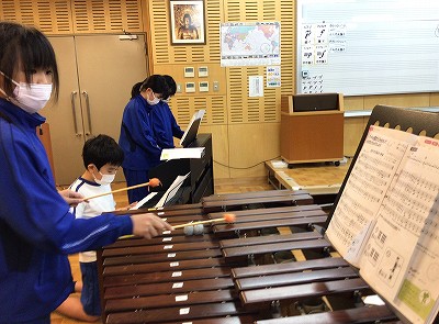 旋律パート(鍵ハモ)を担当するピアノ&オルガン&マリンバチームです。