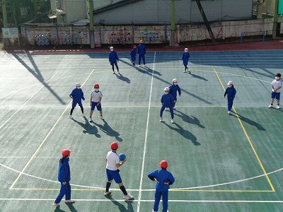 今日はボールが使える中間休みです。お日様も差して温かい気候の中、みんなで全力ドッジボールを行っていました。
