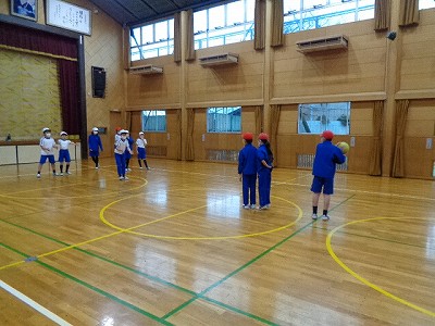 2時間目の体育は、雨天でグラウンドが使えず、体育館でドッジボールと大縄跳びを行いました。いつも行っているドッジボールとはルールを変えて、今日はボールを2つにして行います。