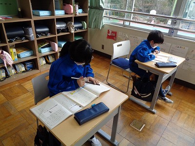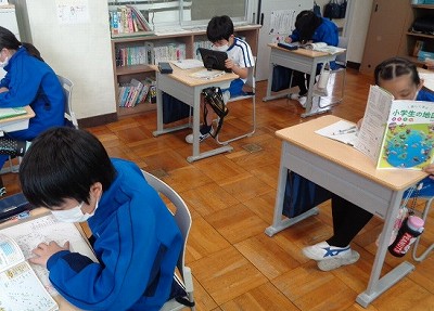今日の昼根っこタイムは、「思考力ドリル」を行います。ドリルでは、「説明」の練習を行います。4年生では、説明する力についてこれまでも練習を重ねてきました。今日は「えんぴつ」を小学校の新1年生に向けて説明するという学習を行いました。「この言葉なら分かるかな?」と言いながら、簡単な言葉に言い換える工夫や100字以内という条件の中で、確認しながら書いていきました。