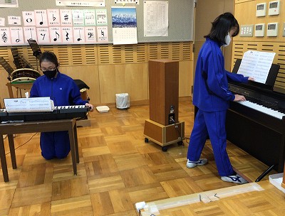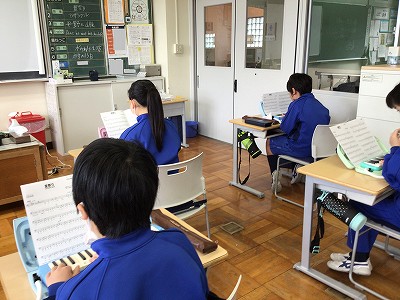みんなが鍵ハモで吹き、オルガンでメロディを重ねてみると、いい感じにベースが響き、拍を刻んでいることが分かってきました。音楽室に向かい、合奏のためのパート決めを相談しました。