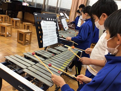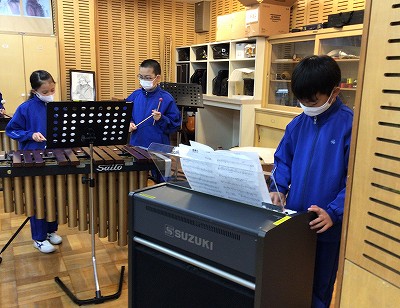 「リコーダーのメロディは鉄琴か…」「オルガンやピアノは使わない?」「鍵ハモパートは、木琴で決まり!」など、まずは、楽器の担当を相談することから始めました。