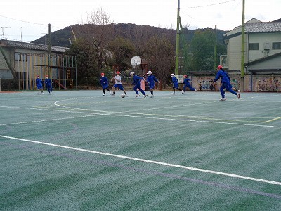 3時間目は体育です。今日で、サッカーの学習が終わりました。今日は、これまでのミニゲームを発展させ、大きなコートを使って9対9の試合を行いました。今日は「ポジションを決める」ということを意識して行います。全員でボールに行くというのではなく、ポジションを決めてコートを広く使うことで、ボールの出せる場所が広がるということが分かりました。