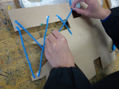 また、この児童は、基底材にはじめからある切り取られた後の形を生かして、裏から毛糸をはっていました。
