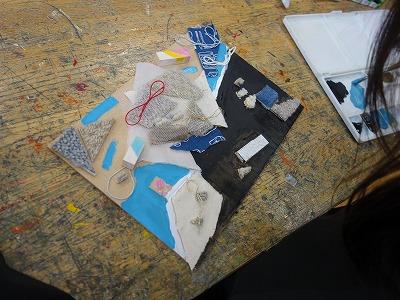 前回に引き続き、今日は完成を目指して続きをがんばりました。ただし、前回は画面の大きさや基底材を選ぶことで、他の材料の組合わせについて考える意識が少し薄れてしまっていたように感じたので、はじめにめあてを再確認しました。