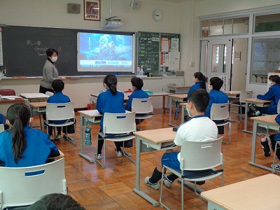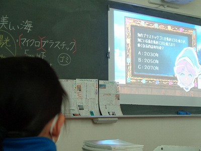 今日は学級活動の時間に「海と日本プロジェクト」に関するDVDを鑑賞しました。このDVDは、海に蓄積していくプラスチックごみについて取り上げた映像でした。