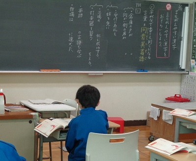 今日の国語は「間違いやすい漢字」について学習をします。「速い」と「早い」の違いや、「機械」と「機会」など、同じ読み方でも違う字を書く「同音異義語」に着目し、教科書の問題を解きました。