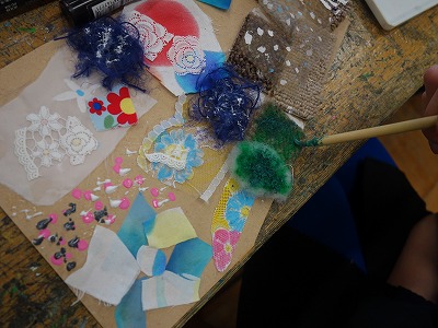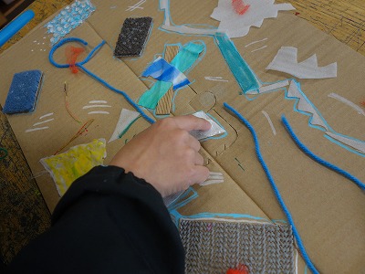 前半の仕上げでは、使用した材料の色の感じを見直し、色の組合わせを考えながらつくりすすめました。