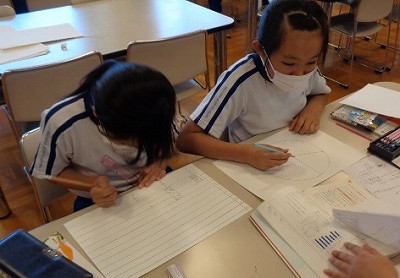 1時間目は算数の学習です。算数は4年生の単元がすべて終わり、これまでに習った学習の中から、復習問題と発展問題に取り組んでいます。今日は「式の計算と順じょ」という単元から□の中を求める問題に取り組みました。答えを求めるだけではなく、□を求めるための立式にもこだわります!