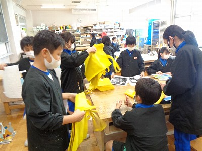 3・4時間目は、図工の時間です!4年生の図工も残りわずか。今日は、図工の作品を作品バッグに入れて持ち帰ります!いろいろな作品を作ってきた4年生。思い出に浸りながら、自分の作品をふり返りました。