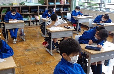 昨日 学習した「長い式の□に当てはまる数を求める計算」の確認テストをしました。計算の順序を考え、その順序と逆に計算していきます。テスト後すぐに各自 チェックをしました。