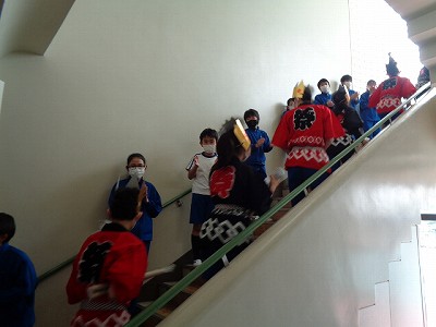 最後は、いよいよ6年生の和太鼓演奏です。4年生は、教室から和太鼓を演奏する6年生の姿をしっかり焼き付けました。体育館に届くよう、大きな拍手をおくります。