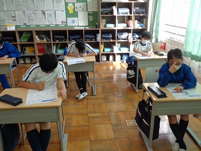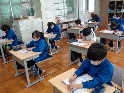 6時間目は、算数の学年末テストを行いました。4年生のこれまでのすべての範囲から出題されます。