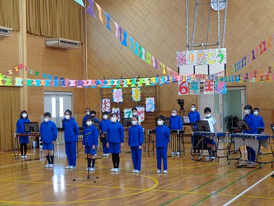 後半は、体育館での合奏練習です。あいさつから始まり、曲紹介もばっちりです。