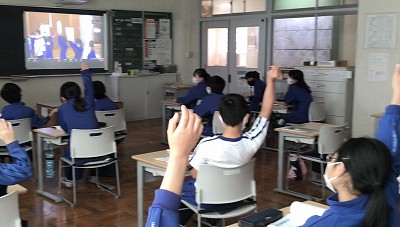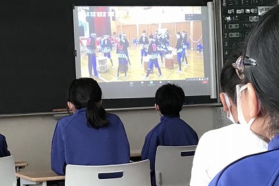 ありがとうの会は密を避けるため、学年が体育館に入れ替わりながらリモート配信で行われます。教室に映し出された6年生の姿に、教室からも拍手をおくります。