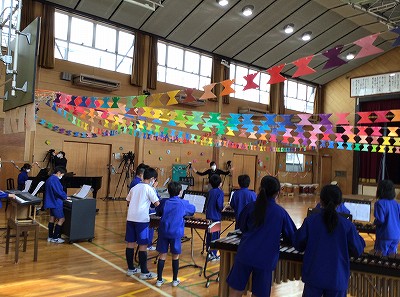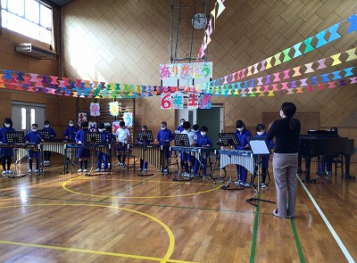 体育館に移動して、いよいよ4年生の発表です。4年生は、6年生に向けて「夏祭り」の合奏を贈ります!テンポがついつい速くなってしまうことが課題でしたが、力を合わせて音を聞き合いながら、最後まで演奏することができました。