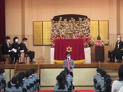 「・・・・・。『明るく、正しく、仲良く』の 仏さまの教えを守り、みんなで仲よく、生活することをちかいます。・・・・」