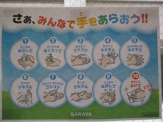 手洗いをするとき、最後に「ハッピーバースデー」を歌いながら、石けんを流しましょう♪