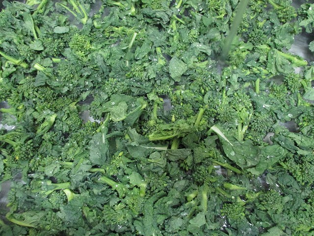 菜花と小松菜をミックスさせると、苦みが少なくなって食べやすいです。
