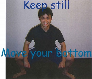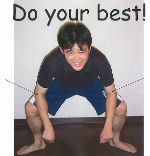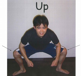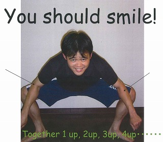 こしをあげたり おろしたり・・・これをくりかえします。つらいですが、スマイルで。