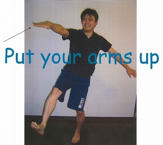 英語でストレッチのコーナーです。今回は足をあげてみました。"Let's do it together !"