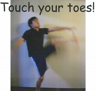 先生は、かたくて なかなかつま先が手につきませんでした。