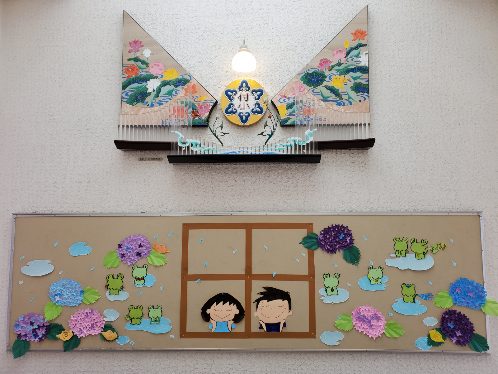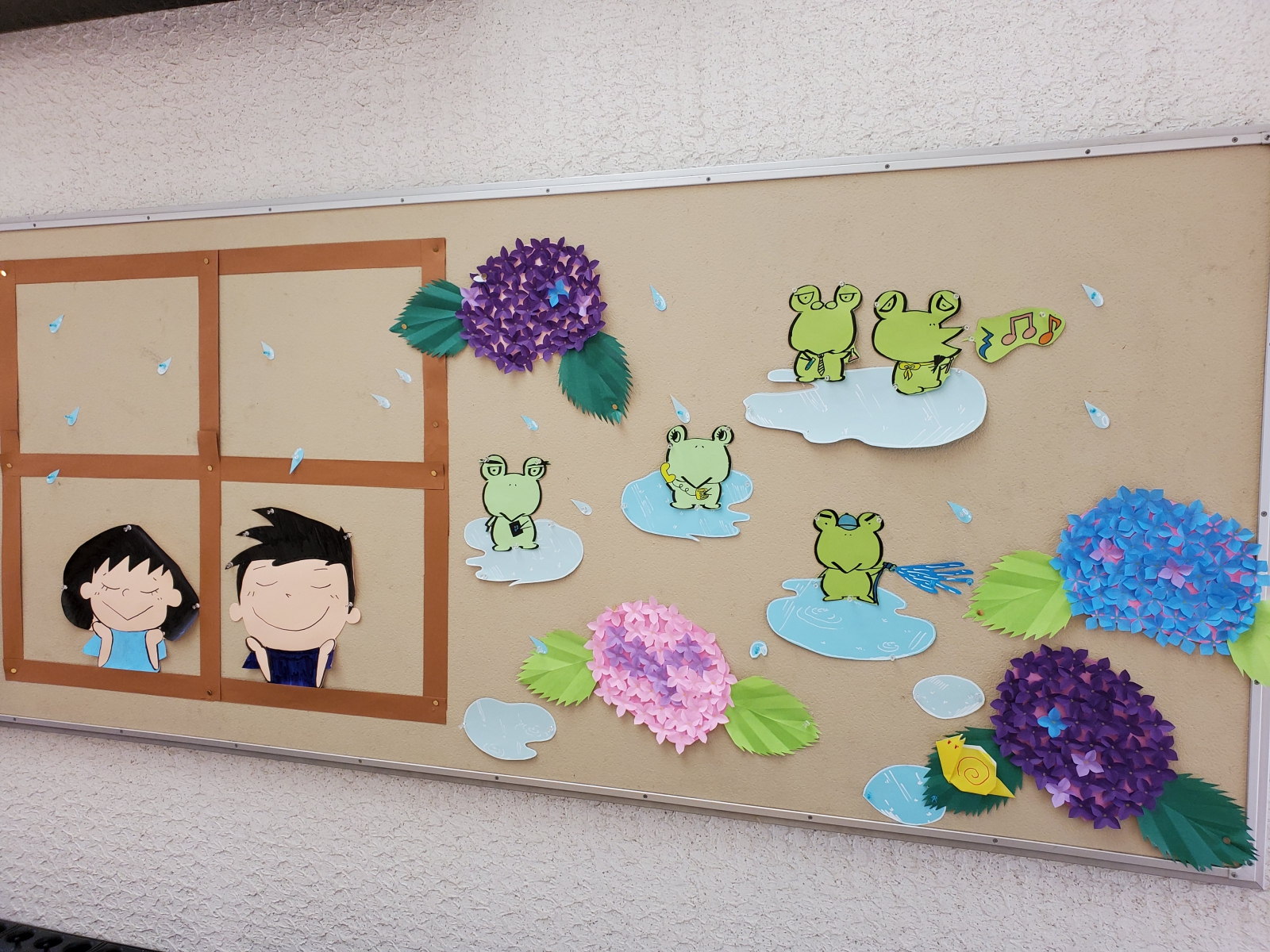 図工の宮川先生が時間をかけ、心を込めて制作した「6月~梅雨バージョン」です!