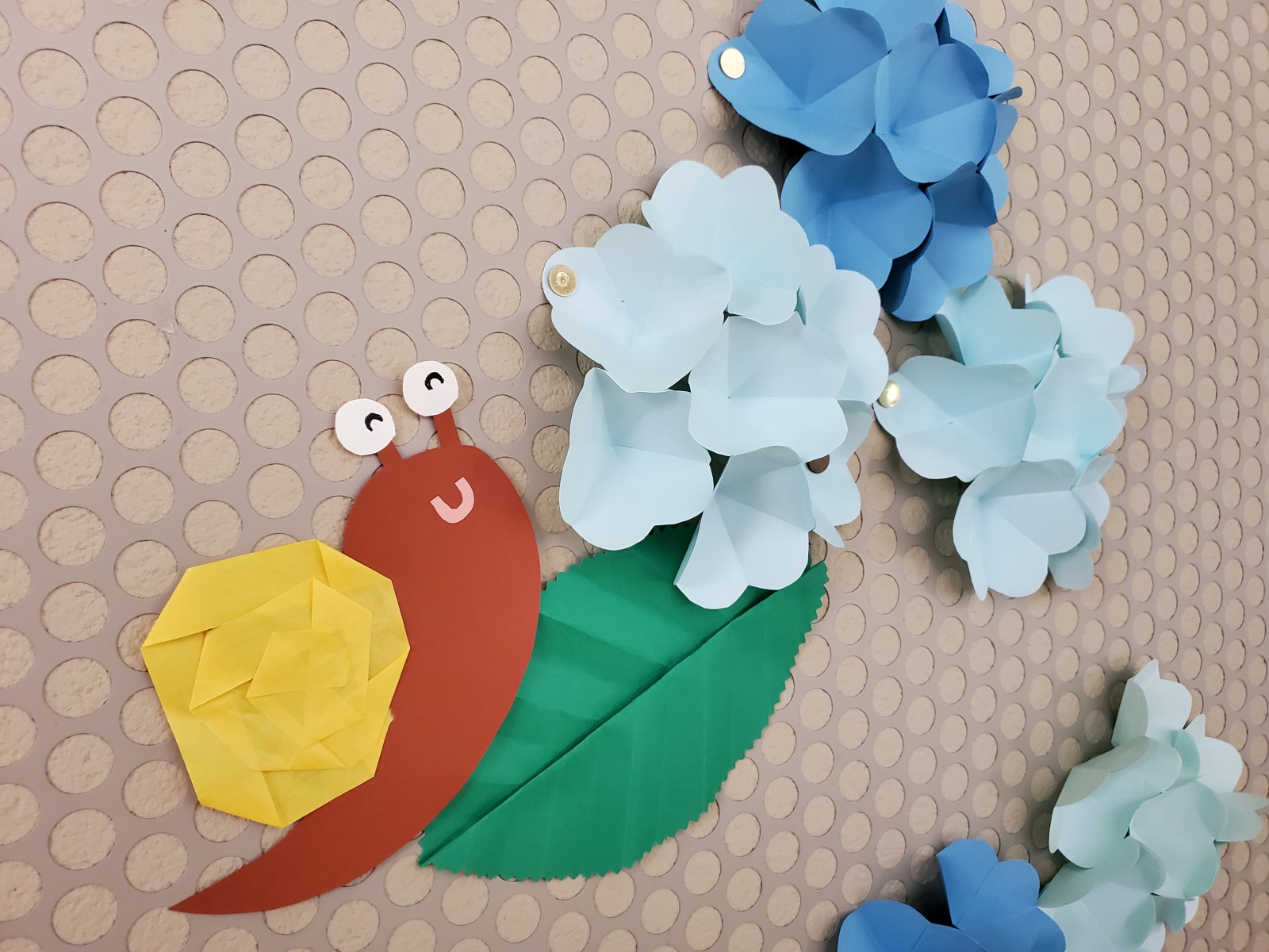 6月にぴったりの掲示。いろとりどりの あじさいがいっぱい!