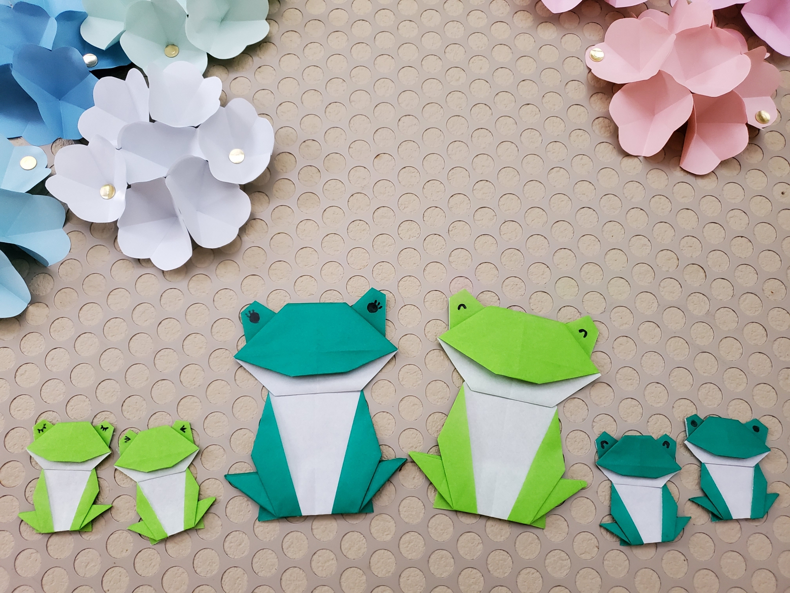 なんと、あじさいの下では、カエルさん達が勢ぞろい。家族? 文教の先生と子ども達・・? あぁ、なるほど。「文教ファミリー」というわけですね。小規模で、家族のような友達、先生、おうちの方々。