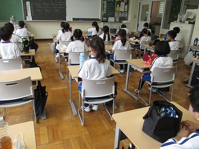 この十数年間、玄関のボードに、ローマ字ヘボン式で記載した誕生日児童の名前や、英語メッセージ等を書いてきました。友達同士や、異学年間で“Happy birthday!” “Congratulations!” 等を言い合えることを願っての掲示で、児童間の温かい心の交流に役立てようというねらいで、続けてきました。