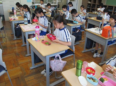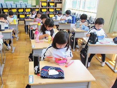 お弁当二週目です。お家の方に感謝の気持ちで、食前の言葉を言いました。