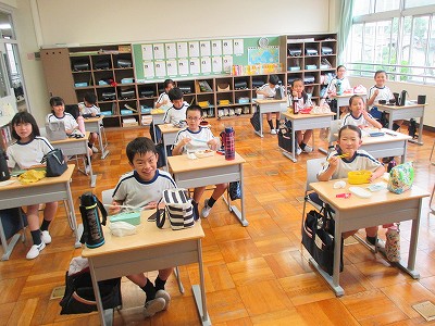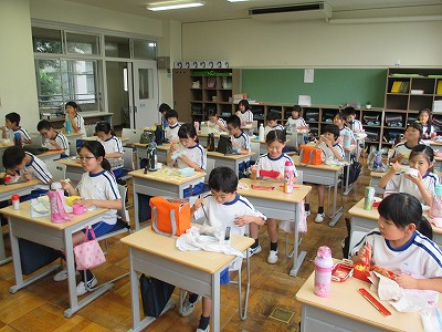 3,4年生のお弁当タイムです。