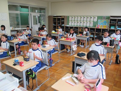 子ども達の最大のお楽しみ、お弁当タイムです。今回は4年生の様子です。